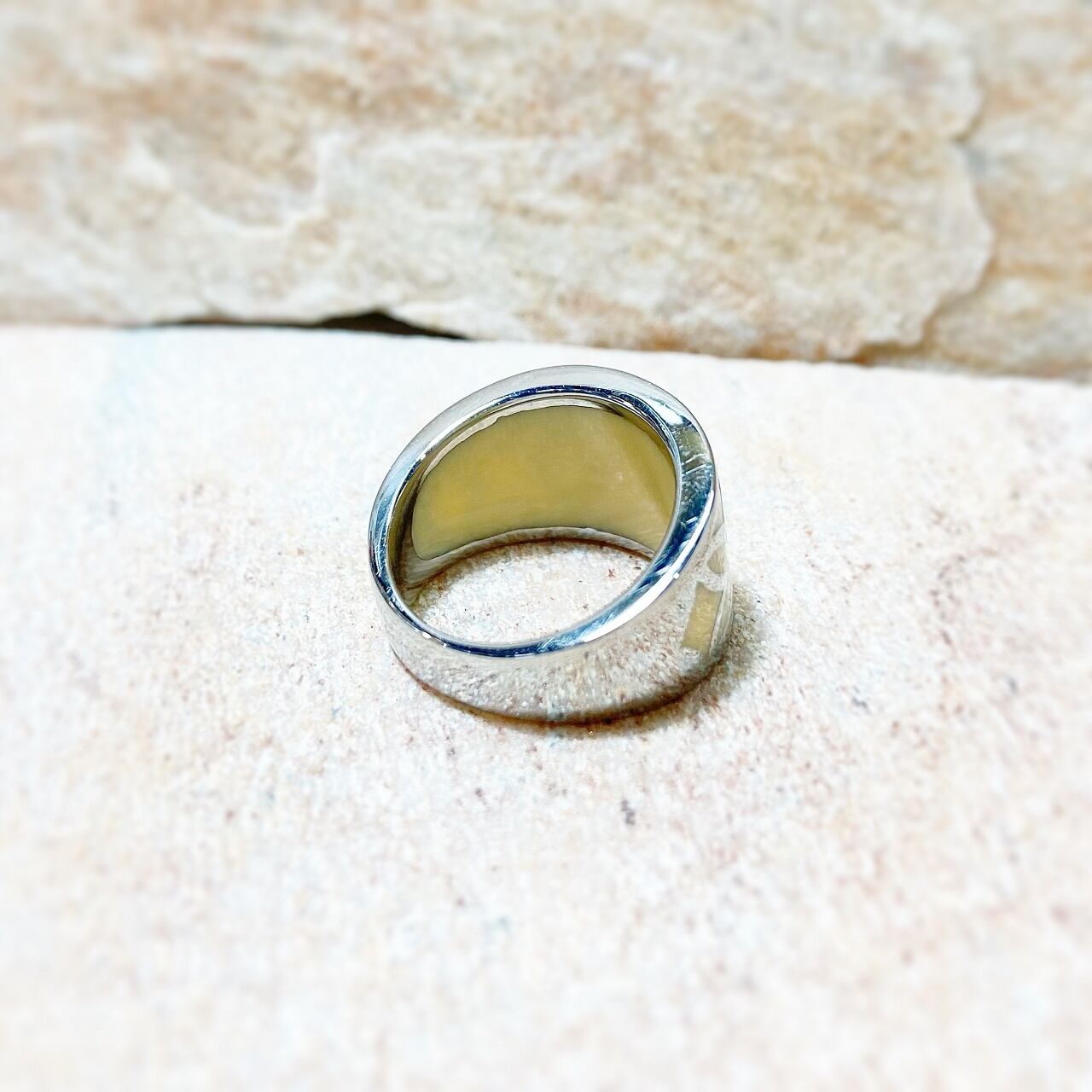 裏が抜けてなく幅の広いリングなので 通常より1サイズ上をお選びいただくことをお勧めします。