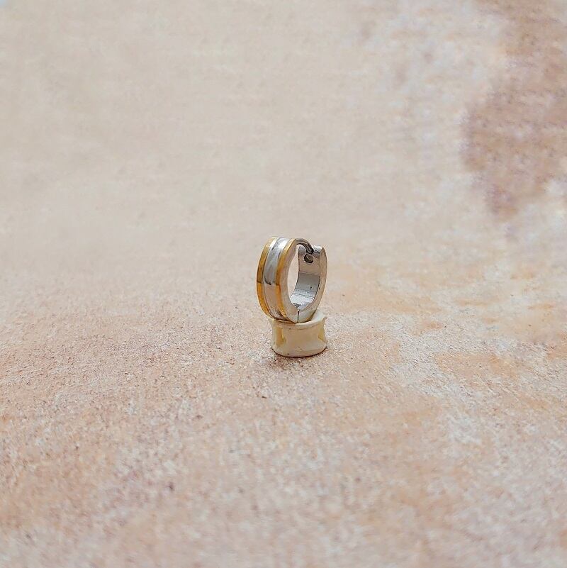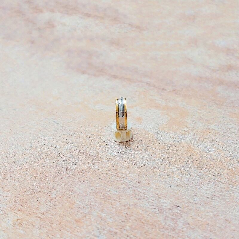 鏡面仕上げの甲丸デザインの両サイドに、PVDコーティングゴールドカラーで縁取りをしたシンプルなピアスです。