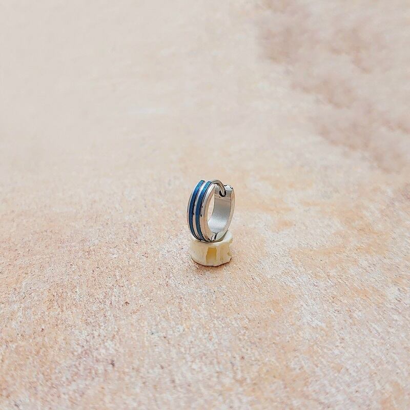 PVDコーティングのブルーカラーがライン状に入ったピアスです。