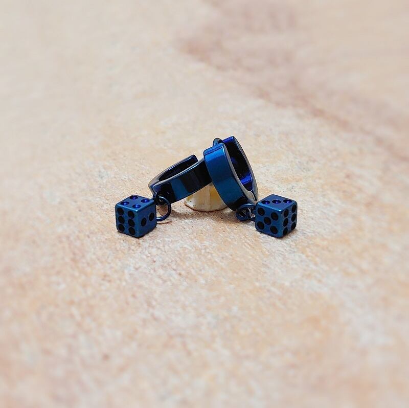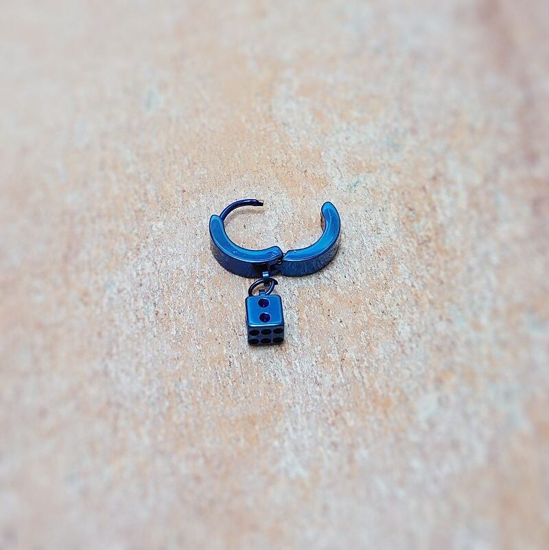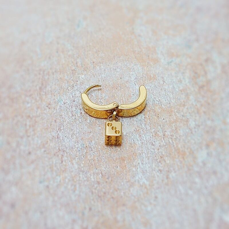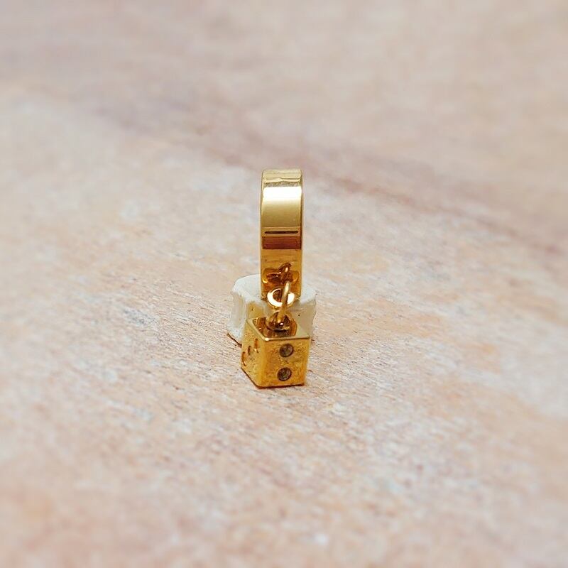 シンプルなフープピアスの下に ダイスのチャームが揺れるオシャレなアイテムです。