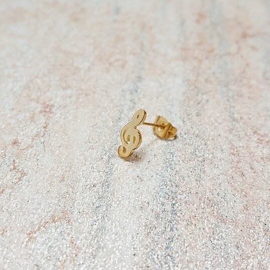 ト音記号を模ったPVDコーティングゴールドカラーのスタッドピアスは、上品な色味と繊細なデザインで人気のアイテムです。