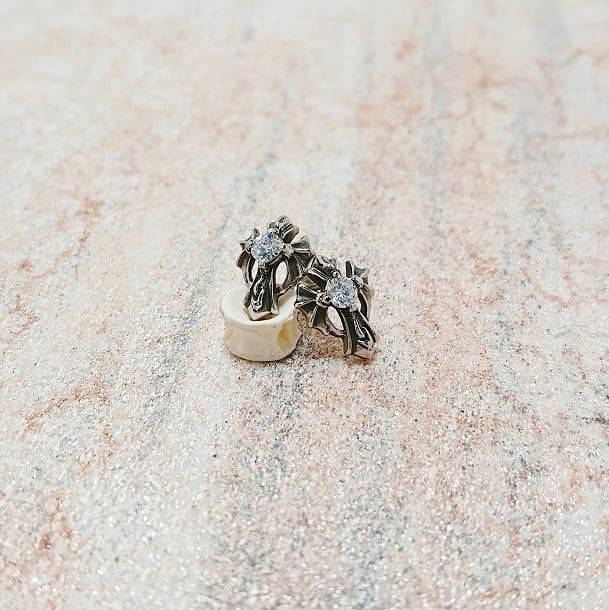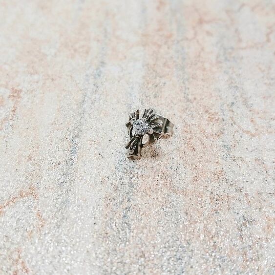 ステンレス ホワイトジルコニア付き デビルズウィングクロス スタッドピアス