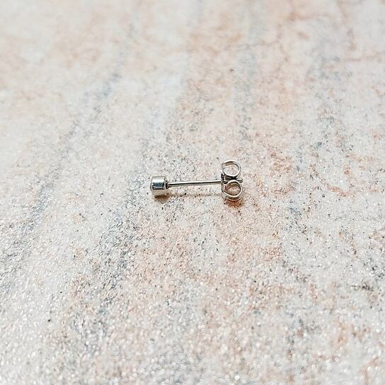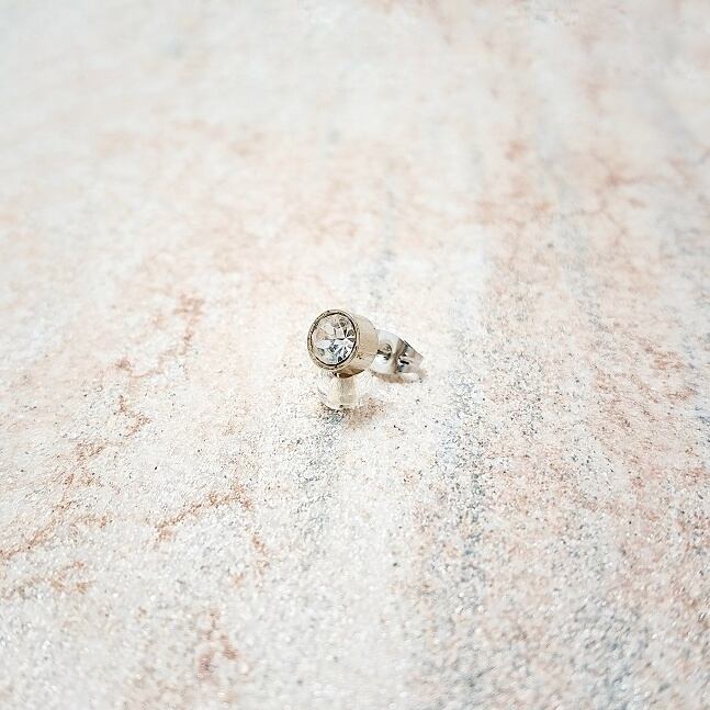 カットを施したホワイトジルコニアがサークル型のカップに入ったスタッドピアスです。