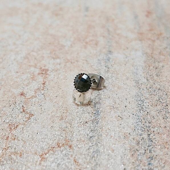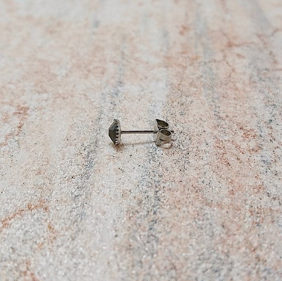 多面カットが施されたブラックジルコニアのスタッドピアスです。