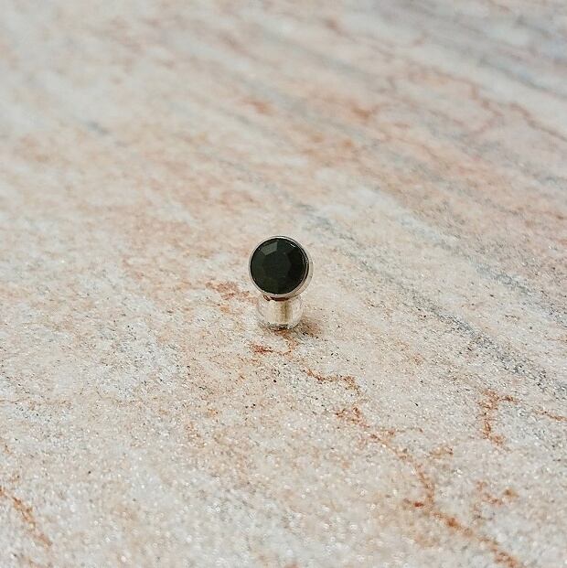 カットを施したブラックジルコニアがサークル型のカップに入ったスタッドピアスです。