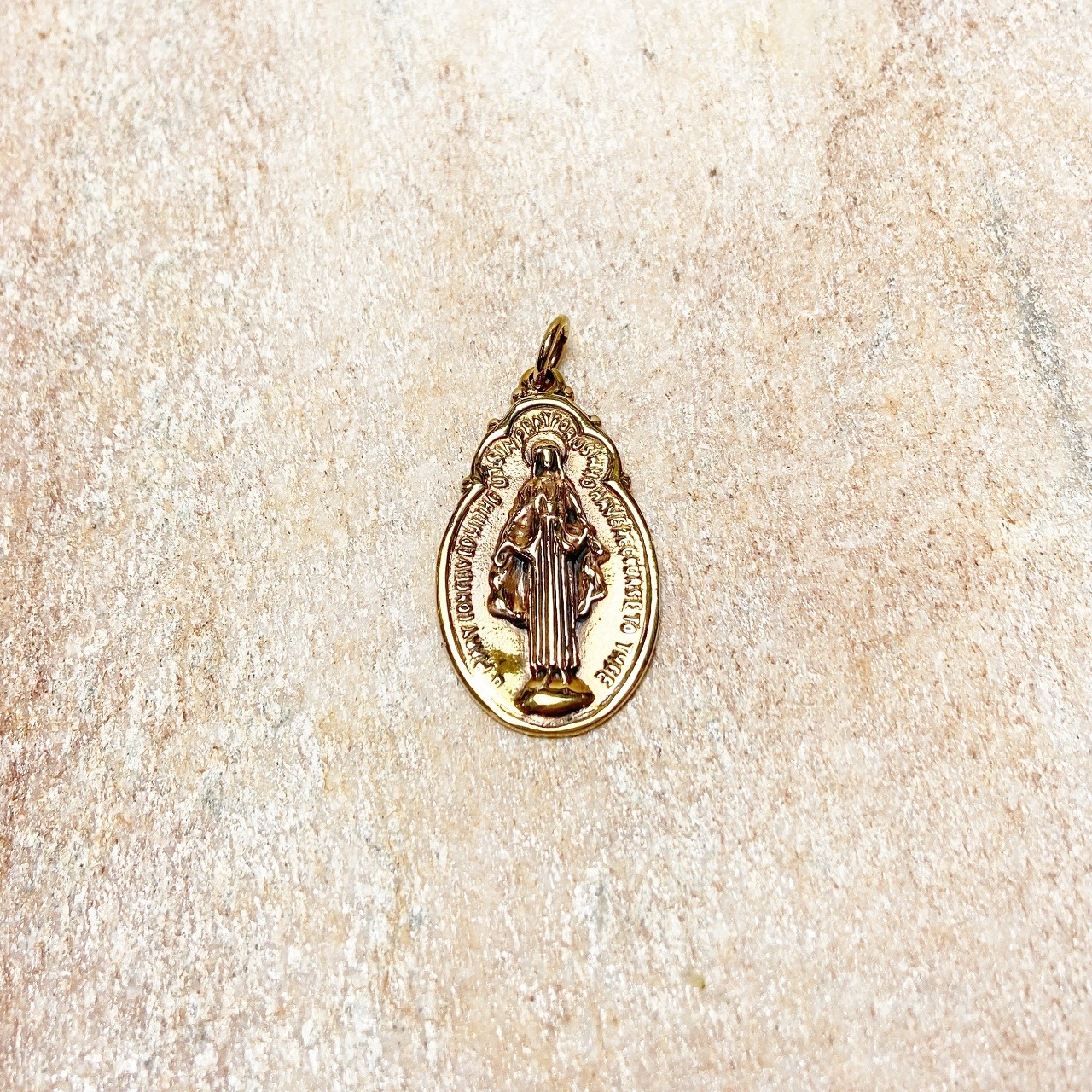 独特の温かみのあるブラス素材を使用した聖母マリアのペンダントトップです。