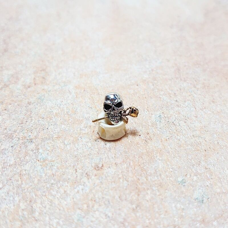 スカルはシルバー製ですが、バラはブラス製なので 遠くから見ても色味の違いが際立ちます