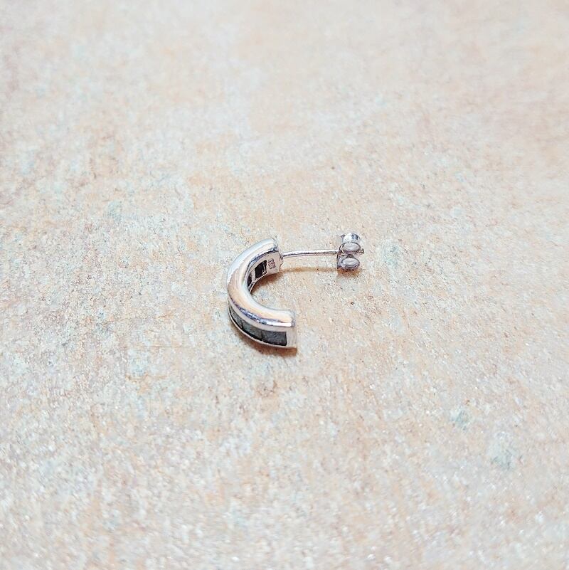 約4㎜角のジルコニアが縦に6個敷き詰められた セミフープ型のピアスです